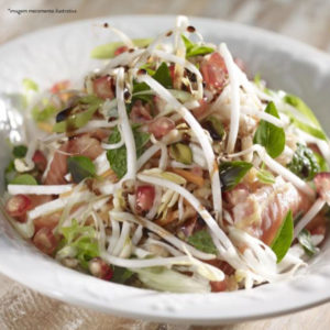 Salada de Broto de Feijão, Cevadinha e Salmão